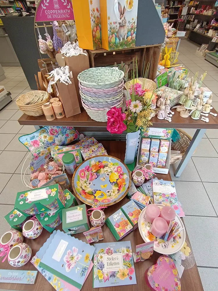 Unser Kunden sollen sich in unserem Buch- und Schreibwarenladen stets wohlfühlen und gerne unser Geschäft besuchen. Durch häufig wechselnde Thementische und liebevoll ausgesuchte Schreibwaren- und Geschenkartikel möchten wir unseren Kunden immer wieder Neues zeigen.