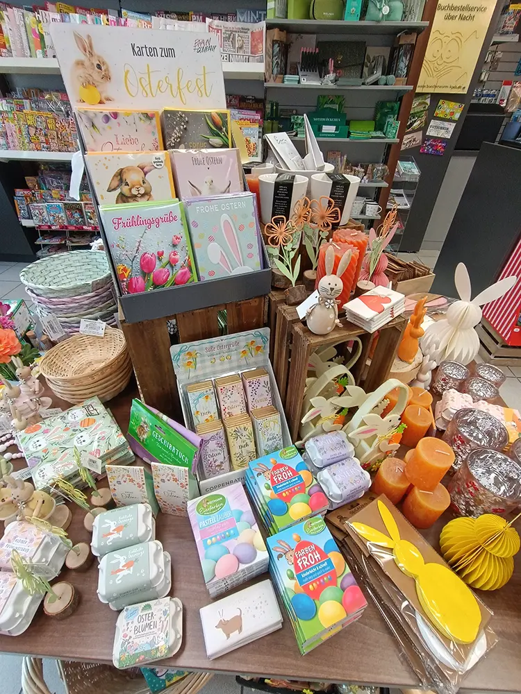 Unser Sortiment umfasst ein vielseitiges Angebot an Schreibwaren, Schulsachen, Kalender, Spielwaren, Bücher, Zeitschriften, Papeterie, Geschenkartikel und Lottoannahme.